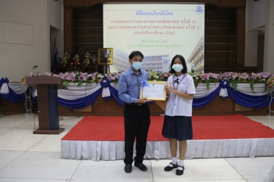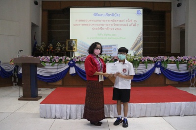วันศุกร์ที่ 5 มีนาคม 2564 พิธีมอบเกียรติบัตรจากการทดสอบความสามารถทางคณิตศาสตร์ ครั้งที่ 25 และการทดสอบความสามารถทางวิทยาศาสตร์ ครั้งที่ 2 ประจำปีการศึกษา 2563 ณ อาคารวิทยาสมาคร โรงเรียนสุรนารีวิทยา