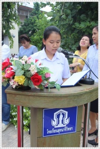ครูเกษียณอายุราชการกล่าวอำลาหน้าเสาธง 11 กย.58